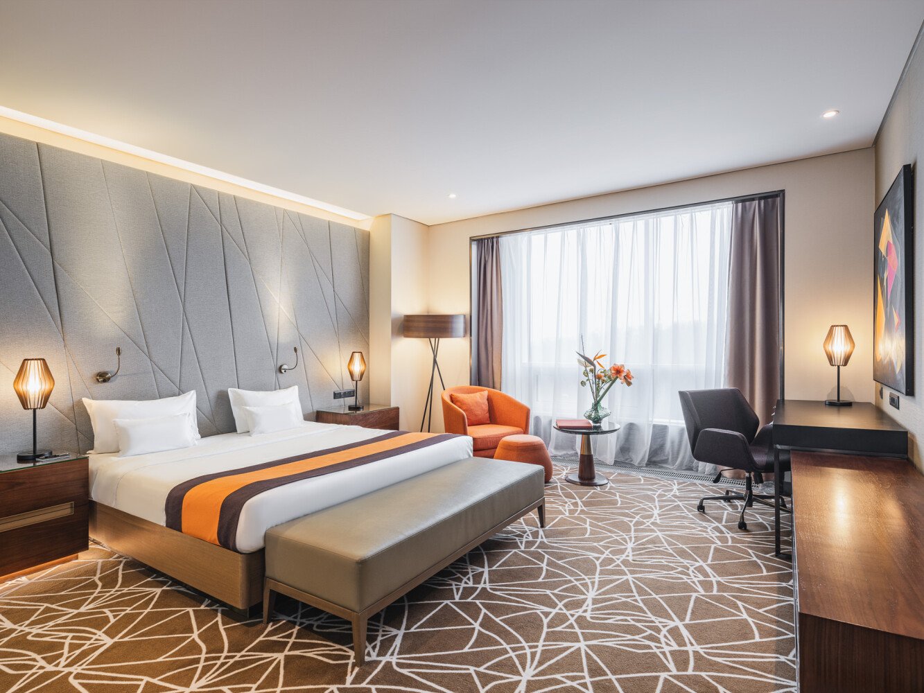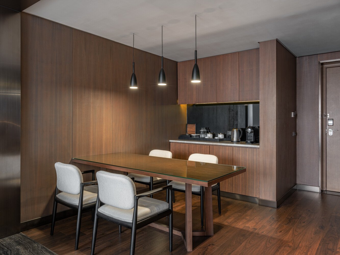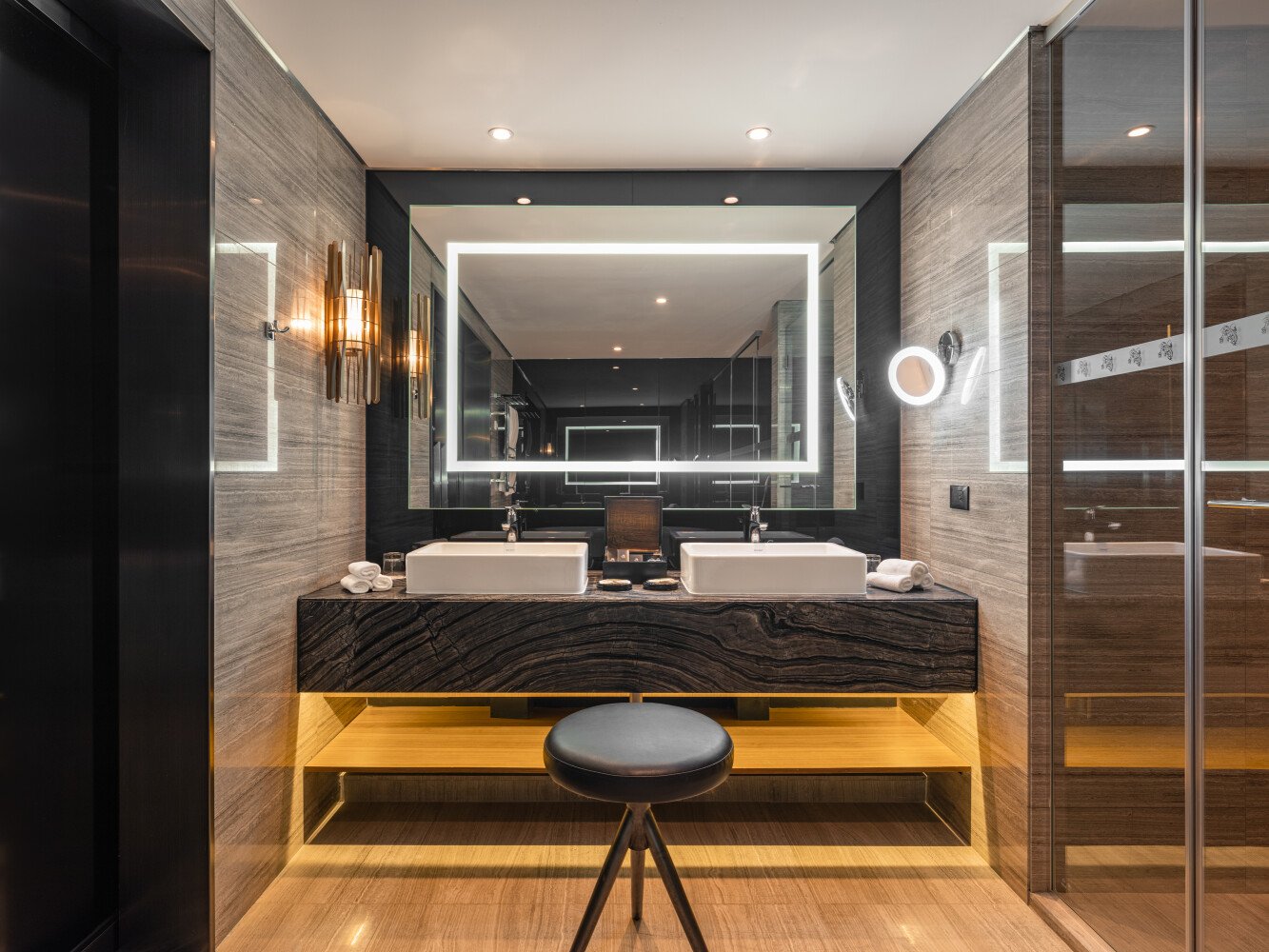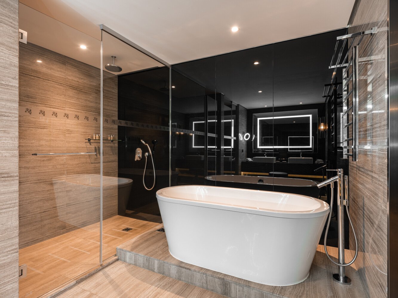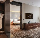 Two-room premium Deluxe Suite of 80 m² consists of a living room with a dining area for 4 people, as well as a bedroom with a working area. The room is ideal for a family with children - extra space allows you to add an extra bed. The bathroom features a rain shower and a free-standing bathtub with premium bath amenities.